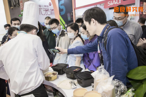 展会上,广州酒家自热米饭受到了大家的喜爱和欢迎,由于该系列产品主打传统广州味道,背靠广州酒家,产品品类包括腊味双拼饭、咖喱牛肉饭等,系列产品从原料到口味,再到工艺,都有顶级大厨层层把关,力争还原食材本味、鲜味,给消费者以不输于餐厅的美食体验,所以试吃区每天都是人山人海,人潮涌动。