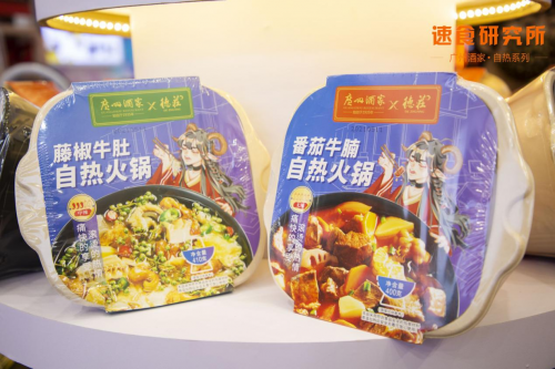 广州酒家自热火锅系列包括番茄牛腩自热火锅、藤椒牛肚自热火锅、麻辣嫩牛自热火锅等众多SKU。为保证味道的完美还原,给消费者以更好的消费体验,在自热火锅领域,广州酒家自热系列与知名火锅品牌德庄火锅进行了产品的共同开发,并以品牌联名的形式为产品品质进行“代言”。