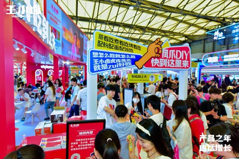 过去八年间,王小卤在卤味零食赛道高速崛起,截止2023年底,其已经连续两年位居全国凤爪零食销售额第一,连续五年位居全国虎皮凤爪销售额第一。今年是王小卤的产品大年,在本次展会上,王小卤除了带来国民级爆款大单品虎皮凤爪的新口味,还亮相了多款在口味和工艺上创新,出道即蹿红的凤爪零食新品,包括去骨凤爪、烤卤凤爪、烤卤鸭掌、大卤桶等,赢得在场消费者的高度好评。