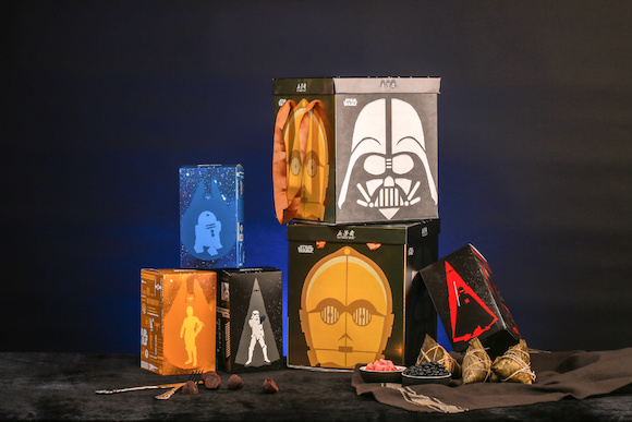 这也许是你最想不到的组合——来自嘉兴的老字号五芳斋居然推出了星球大战主题粽,纪念款包装有黑色帆布包和铁皮桶,口味上也同时照顾了咸党和甜党,包含东坡肉粽、黑椒牛肉粽、栗子鲜肉粽、紫糯蓝梅粽、润香豆沙粽、红糖红枣粽各2枚,售价238元。