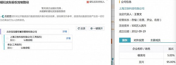 工商资料显示,掌鱼生鲜超市主体由北京宝宝爱吃餐饮管理有限公司运营,该公司主要控股股东为上海三快科技有限公司,后者为美团创始人王兴实际控制(95%),而上海三快公司的法人王慧文同时为亚洲渔港供应链管理(大连)有限公司的董事。很有可能,掌鱼生鲜超市的海产品供应将由亚洲渔港公司来负责。