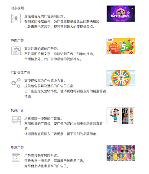 零售生意之外,旺旺看中的,还有自动售货机的广告价值。旺旺自动售货机外侧有一块32寸的显示器,可以承载多种广告模式。机身和摆放商品的货道同样也都是广告位。