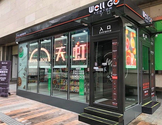 12月19日,深圳老牌百货天虹在深圳福田区的一个写字楼下开设了无人便利“Well Go”,以黑色调的盒子呈现给这个名为喜年中心写字楼的商务人士们。