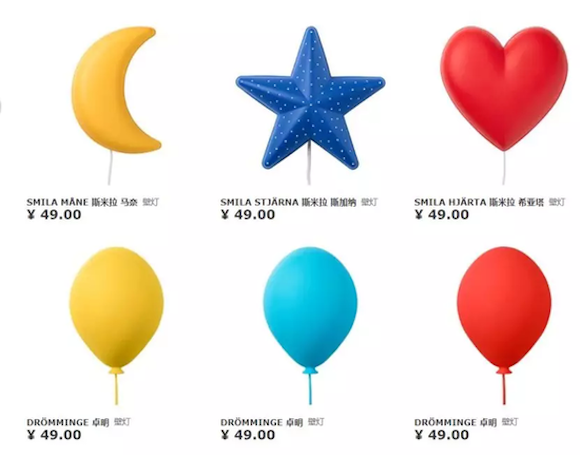 2013年12月,宜家决定召回这批自1999年以来一直在店内销售的壁挂式灯具。这批被召回的灯具包含八种设计类型:包括蓝星、黄月亮,粉红花、白花、红心、绿虫、蓝贝壳和橙色海马。