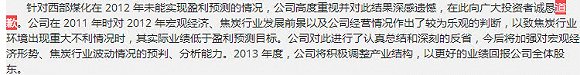 2011年,维维股份收购一家煤化工企业,欲进军煤矿业,也在次年以巨亏2000万元而惨淡收场,不得不向投资者道歉。