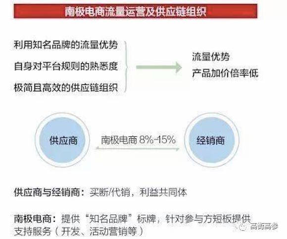 随着天猫独立以及对品牌商家的资源倾斜,缺少自主品牌的网店最省力的方式就是租品牌。看到商机的南极人,直接砍掉了所有线下渠道,并注册了大量店铺,专注线上的经营。2015年南极人完成转型,成为一个以品牌授权为核心的轻资产互联网平台,并成功借壳上市。