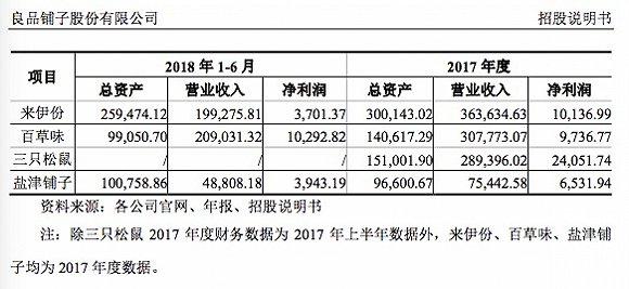 招股书披露,报告期内(2015年、2016年、2017年和2018年1-6月)良品铺子的营业总收入分别为31.5亿元、42.9亿元、54.2亿元和30.4亿元;公司归母净利润分别为0.45亿元、0.99亿元、1.13亿元和1.12亿元;2016年、2017年净利润分别同比增长118.16%和14.66%。