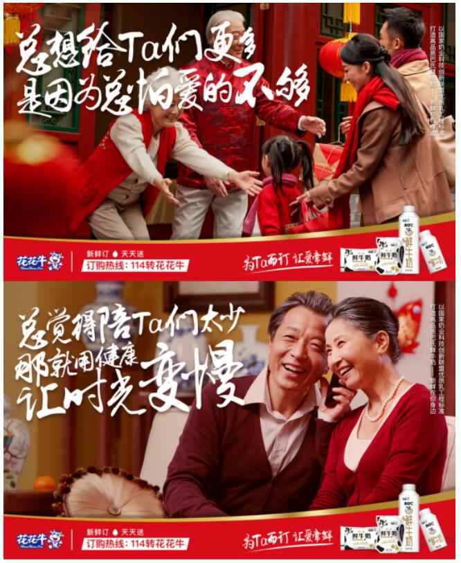 2019年新春前夕,花花牛乳业集团倾情打造“为Ta而订,让爱常鲜”新春主题的营销活动,本次活动将大众视野聚焦在用户的真正情感诉求上,从消费者缺失的情感表现出发,无论从产品包装还是扎心文案,都旨在唤醒用户要注重爱的表达,展现花花牛产品多种语义的同时,以更丰富的视角与用户沟通,在新春之际传递给家人关爱和健康。