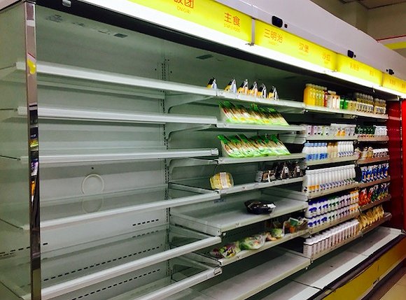 界面新闻2月19日在走访时发现,北京全时便利部分直营门店出现严重缺货现象。南三环附近的全时草桥店里,货架上出现了整排缺货的情况,风幕柜也有一列完全空缺。