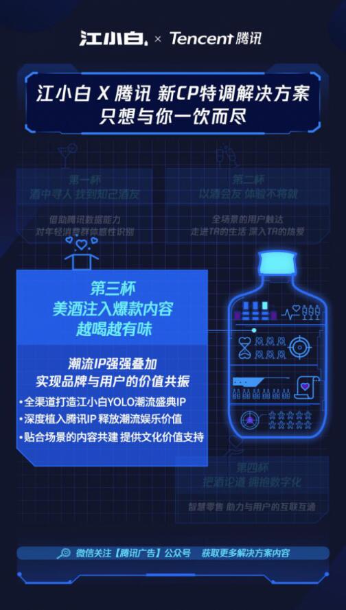 酒过四杯,干了腾讯与江小白“新CP解决方案特调”,把握新酒饮时代的先机,打通从用户心智到数字化的高架桥,搭上这班通往用户感知到潮流营销的快车,期待新酒饮时代下的白酒行业的数字化新征途。
