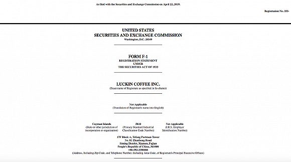 美国时间4月22日,美国证券交易委员会(SEC)公布了瑞幸咖啡(Luckin Coffee Inc.)提交F-1表格的信息。F-1表格也就是非美国本土公司的注册上市公告,这意味着瑞幸终于向美股上市迈出了第一步。