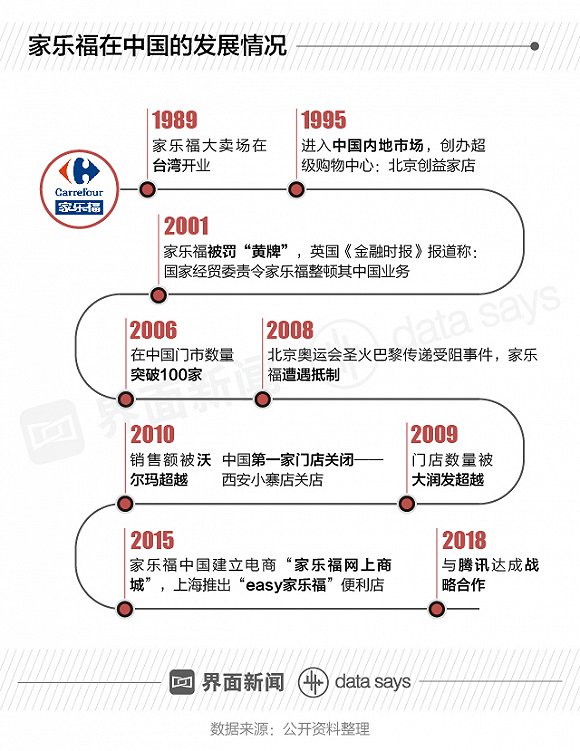 2019年5月8日,彭博社得到消息,家乐福中国正在接触潜在购买者,当时被曝光的家乐福中国估值为10亿美元。事实上,从2017年年底就已经开始传出家乐福剥离中国业务。到2019年6月23日石锤卖身苏宁,家乐福中国这一年多还经历了签约永辉和腾讯、将家电业务托管给物美,海外购业务全面入驻京东等动作——也许是为了尽可能抬高身价。