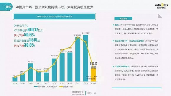 这一切,从VC机构募资就看出端倪。清科研究中心数据显示,2019上半年VC市场募资893.27亿元,同比下降49.6%,堪称腰斩;
