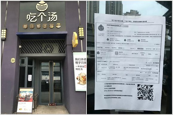 该地负责招商的工作人员向投资界(ID:pedaily2012)记者讲述:“关店时曾向吃个汤内部人员打听,据说是资金链断裂了。”而后记者又走访星河谷店发现,该店同样处于关门状态。点单台前竖立着一块通知牌:内部设备升级,暂停营业。敬请期待,下周见。但“下周见”一直迟迟没有到来。