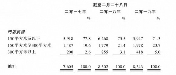 而招股书显示,截至2017年、2018年及2019年2月28日,滔搏国际门店的总销售面积分别增加了13.0%、11.4%和9.3%,其还在不断提升规模相对较大的门店数量。