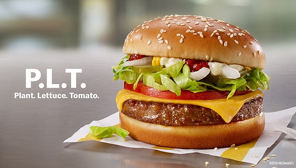 麦当劳的这款新汉堡由Beyond Meat作为肉饼供应商,名为“P.L.T.”——即汉堡内配菜植物人造肉(Plant)、生菜(Lettuce)、番茄(Tomato)的缩写。“我们一直在研发人造肉汉堡的配方,现在终于准备好上市聆听消费者的反馈了,”麦当劳全球菜单策略副总裁Ann Wahlgren在公告中表示。