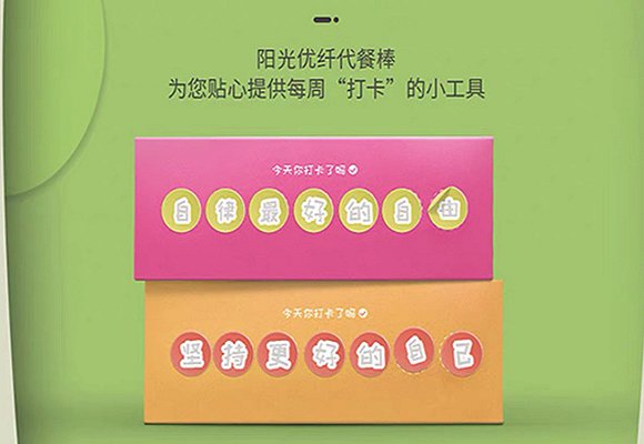 同时,为培养消费习惯,品牌在产品外盒上设置了打卡区,内附不干胶贴,每天可完成一次轻食打卡,七天为一个周期。