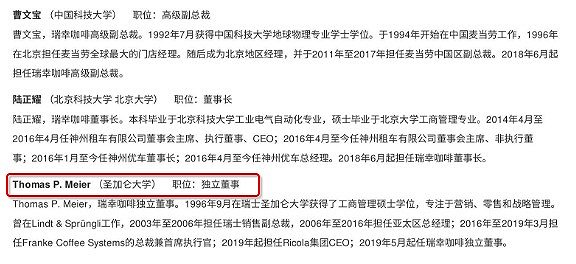 在何刚离职之前,4月21日,独立董事托马斯·卖耶(Thomas Meier)也向瑞幸公司提交了辞职信,该辞职在当日生效。