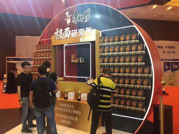 在现场展区,康师傅设置了专属展台展示其产品和研发创新方面的最新成果。其中黑白胡椒系列包括黑胡椒牛排面、白胡椒肉骨面,是康师傅与年轻消费群沟通后重磅推出首款口味创新的系列产品。此系列产品的特别之处在于加入了精选自马来西亚和印尼的优质胡椒,并以现代化方式萃取浓缩传统工艺及食材的汤头,再搭配多种配菜及爽滑面条。从而使该系列产品在口味辛辣的同时营养更丰富,迎合了年轻消费者的需求。