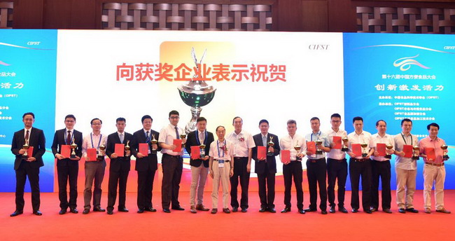 康师傅代表(二、左三左六)领取四项2015-2016年度创新产品
