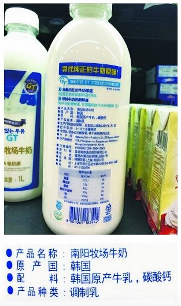 在北京某高端超市,最为集中的原装进口奶来自于韩国,南阳牧场牛奶、延世牧场牛奶、济州乐活牛奶三款牛奶是超市销售人员介绍的产品中卖得最火的。不过,这三款牛奶有一个共同的特点,就是产品类型均为调制乳。