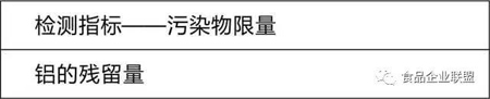 国家质检总局《关于加强对食品中铝残留量检验的通知》(国质检食监函[2006]108号)规定,面制食品中铝残留量不得超过100mg/kg。例如个别企业在面粉制品中超范围、超量使用膨松剂硫酸铝钾和硫酸铝铵,造成食品中铝含量超标。