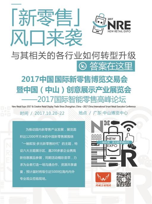 为推动我国新零售产业发展,深化我国零售终端、创意展示行业与国际接轨,在良好的政策环境下,由中国文化管理协会(拟)、广东省文化产业促进会、中山市文化创意产业协会与广东鸿威国际会展集团联手搭建的智能零售、创意展示全新平台——“2017中国国际新零售博览交易会暨中国(中山)创意展示产业展览会——2017中国国际智能零售高峰论坛”即将于12月1-3日在中山博览中心盛大举办。