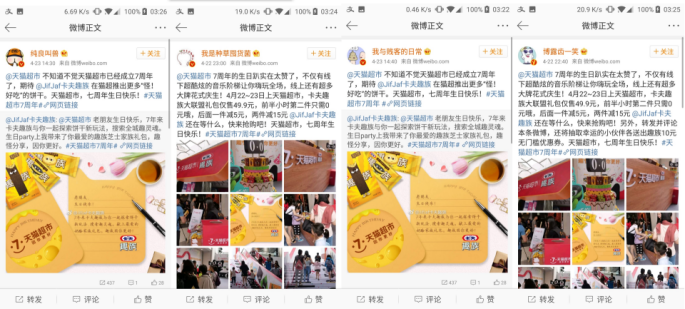 除了别具一格的音乐阶梯之外,怎么少得了留言祝福这一仪式感满满的庆生环节呢。当然作为“寿星公”的天猫超市在收到每一位的祝福后都会送大家怪好吃的趣族饼干。