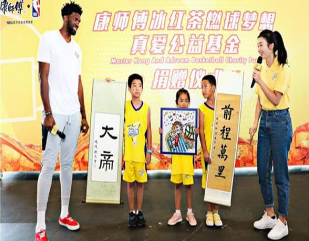 一对康师傅冰红茶的小球员也参与了表演,他们正是康师傅冰红茶与真爱梦想基金会联合发起的燃球梦想公益项目所捐助的孩子。10月3日的公益活动,为恩比德送上精美作品的3个孩子中,就有这两个可爱的小家伙。康师傅冰红茶把怀有篮球梦想的普通小朋友们,送上NBA中国赛的这样的梦想殿堂上,正是对燃球梦想最好的传递。看着孩子们运球肆意的奔跑在NBA级别的球场上,观众们的热情再次被燃动。