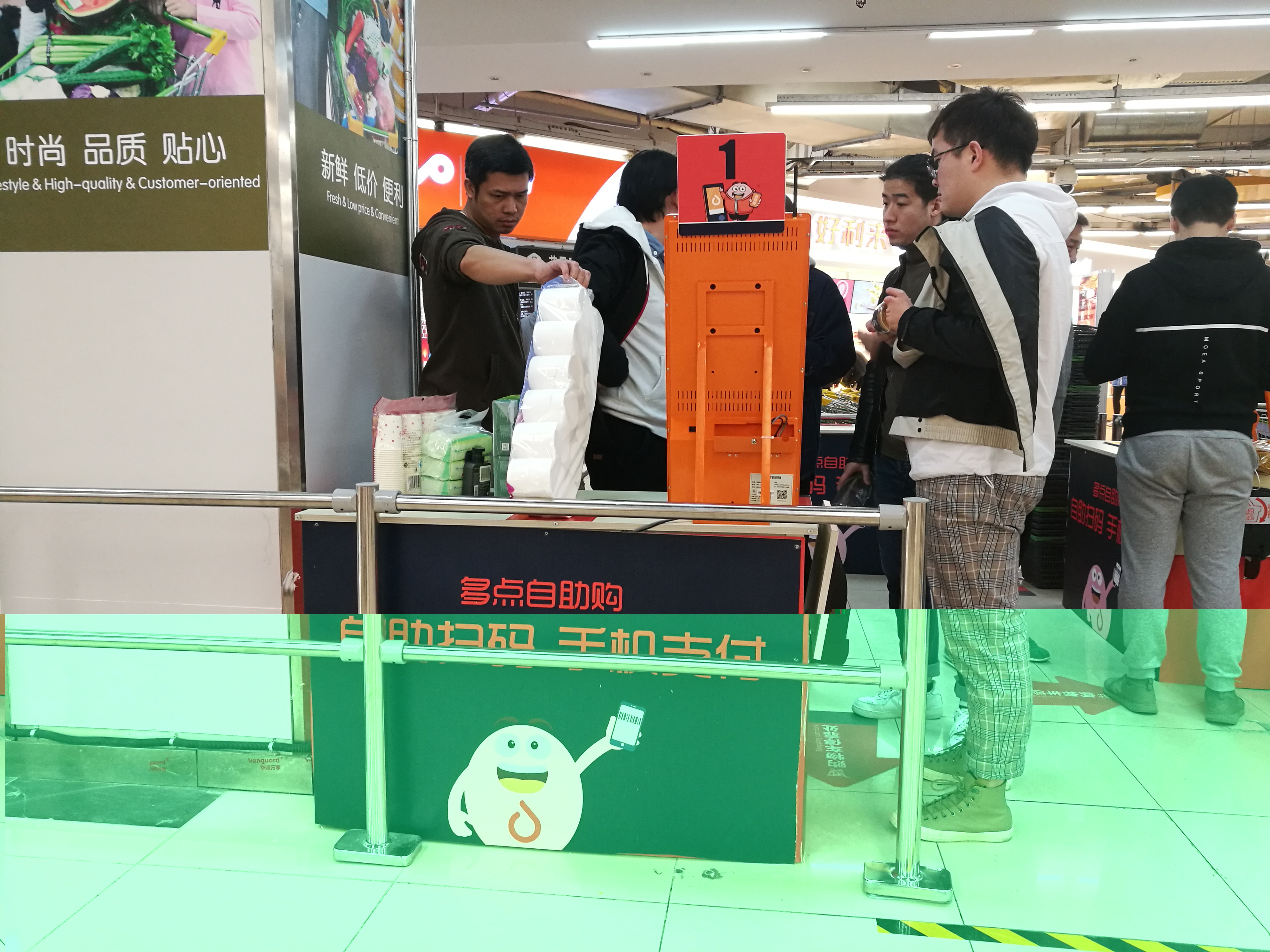 3月4日,新京报记者走访华润万家酒仙桥店发现,该门店门口招牌虽然仍为华润万家,但内部已改造为物美,生鲜区均是物美“缤纷田园”商品,部分零食区也上架了“缤纷田园”商品,结账区同样引进了物美的“多点”自由购设备,而身着“华润万家”服装的工作人员指引结账。