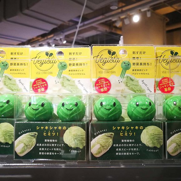 店内有不少日本文具杂货和一些新奇的生活杂货,比如可以插在卷心菜等蔬菜根部、延缓蔬菜变质的小工具,底部有浮世绘的玻璃杯,可以自己拼接的3D折纸,咖啡用具等等。