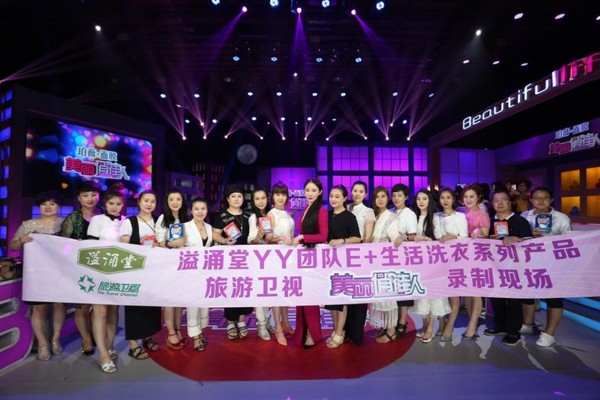 溢涌堂创始人傅尧受邀带领溢涌堂YY团队各位大咖亲临《美丽俏佳人》栏目录制现场,同时参与到节目的录制,并与主持人和嘉宾合影留念。溢涌堂E+生活洗衣片为YY团队荣誉出品,YY销售团队现有人数十三万,是微商界唯一一个集品牌、生产、销售为一体的运营团队。产品总销量遍布全国更是远销海外,团队同心同德更是亲如一家,帮助几万人失业再就业,带着“溢家人、一家亲、一辈子”的信念共创梦想。