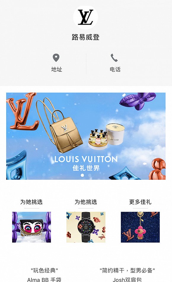 以LV为例,当用户在搜索栏输入LV时,搜索结果第一栏便是LV官方精品店的入口。进入后可查看周围的LV门店和电话,并依次显示最新活动、产品分类、精选产品等信息。整个页面的产品推荐不超过6件,画面简洁,信息明确。若进一步点击,微信会站内跳转至LV中国官网,消费者在品牌官网中完成在线购物、信息查询等功能,服务和购买步骤与官网一致,但只可用微信付款。耐克、Zara、施华洛世奇等品牌与LV类似,若购买都需从微信站内跳转至品牌官网完成。