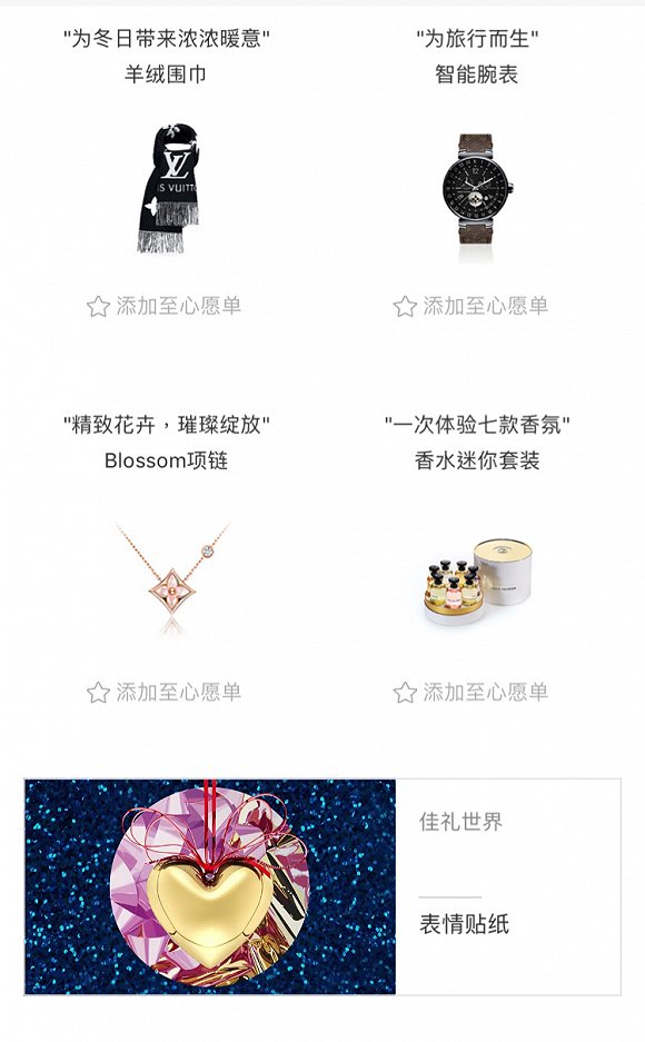 而且精品店界面简洁,很容易凸显品牌最需要展示的信息,因此比起购物商城,微信官方精品店更像一个品牌宣传和互动的区域,比如不少品牌在精品店内展示核心产品,还推出表情包等增加与消费者的互动。