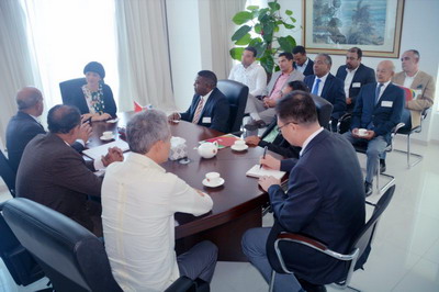 2018年7月25日,驻多米尼加使馆临时代办傅新蓉会见多米尼加食品和日用品贸易全国委员会主席赫雷斯一行12人。