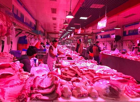 11月26日,界面新闻记者走访北京新发地肉品交易市场时发现,鲜猪肉价格出现了不同程度的下滑。“白条猪(宰杀好的整猪)价格已经往下掉了,前几天还是8块5(1斤),这两天已经8块以下了。”一名商户告诉界面新闻,在批发环节,一公斤1元的波动已经算是比较大的波动幅度了。最近他和相邻的几个同行,均有不同程度的客户损失。“我这儿有很多单位食堂的客户,最近好几个都不来买猪肉了,说食堂改吃鸡肉了。”