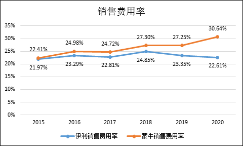但乳制品行业有一个不成文的特点,类似于汽车行业,即其销售费用在整个A股行业中都算是比较高的。伊利、蒙牛的明星代言广告遍布各大卫视,两者过去多年的销售费用率均在20%以上。但两者的走势区别是泾渭分明的,蒙牛近年来的销售费用率持续上升,而伊利则似乎放松了警惕。