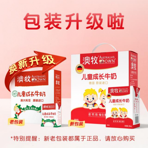 2020年11月起,澳牧进口儿童牛奶上线新包装,并推出无糖型儿童牛奶,“0”糖守护,天然的味道,同样受到妈妈和孩子们的喜爱!