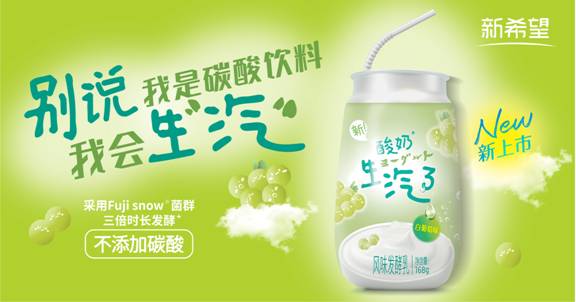 以“酸奶生汽了”这款开创气泡酸奶品类先河的创意产品为例,新希望乳业的研发人员洞悉到Z世代年轻人对“新奇特”口味和“健康营养”需求的偏好,决定大胆尝试酸奶和时尚口味的跨界碰撞。而深受年轻人喜爱的气泡水则成为了他们的灵感来源:如果可以通过新希望乳业的专有技术保留酸奶菌种发酵时产生的气体,就能获取到碳酸饮料一样的气泡口感酸奶了。不过这一技术创新对菌种和发酵工艺技术要求极高,在业界还无人成功。新希望乳业的研发人员们在反复实验中筛选出一款稳定的气泡菌种Fujisnow,并尝试采用低温慢发酵技术有效激发乳酸菌的异型发酵,再通过胶体复配,让酸奶在发酵之后形成微型空腔,有效滞留了产品内部非稳态二氧化碳。通过反复配比实验,最终让气泡酸奶在保证口感清爽前提下,形成了绵密气泡的刺激感,兼具美味和感官体验,开创出了气泡酸奶的全新品类。