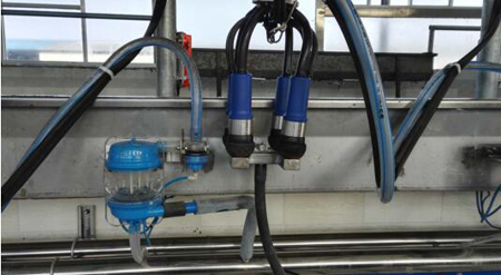 牛奶电子计量器,准确测定出每头牛的产奶量和电导率,并把数据自动传输至管理软件—阿菲牧数据库;配合全自动脫杯系统,当牛奶流速低于设定值后,挤奶杯自动脱落,避免了牛只的过渡挤奶给乳头造成的损伤。