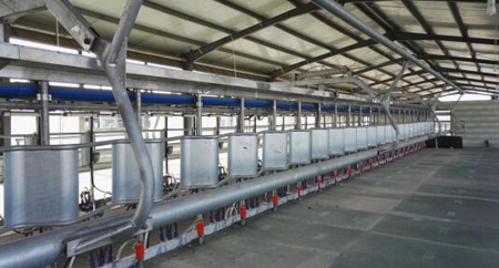 此新建奶厅的配置为2*30位鱼骨式快放挤奶厅,平均每小时可挤奶300头次;软件为阿菲金现代化牧场管理系统:奶牛上厅挤奶,系统自动识别牛号信息并收集其携带的各方面信息数据,传输至电脑系统,通过软件的数据库进行分析,生成很多实用的报告,可以有效的监控到牛只的发情、乳房炎、疾病健康状况,从而大大提高牧场管理人员和技术人员的工作效率和工作质量,同时牧场管理者可以从大量的数据库信息中提取有效的信息,做成统计性分析报告,用数据指标说话,实现数据指导生产,更好的服务于生产,从而不断的提升牧场的业绩水平。