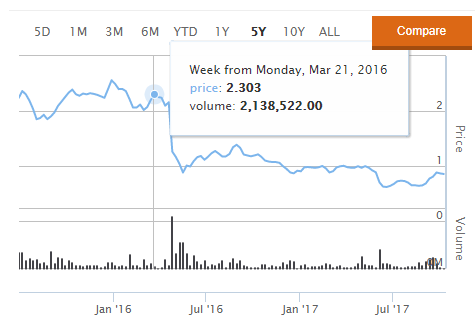 在过去18个月中,迈高股价跌超60%。
