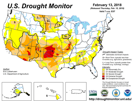 首先是因为干旱问题。美国农业网站Agweb援引美国农业部气象学家Brad Rippey的观点称,美国中部地区的干旱情况正在加剧,尤其是玉米带。北达科他州、蒙大拿州和南达科塔州等地的干旱情况增加了几个百分点,而玉米带的干旱成都却增加了十个百分点以上。