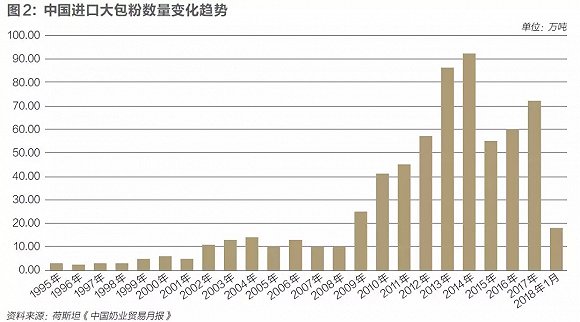 三鹿事件后,为淘汰落后产能,国内奶牛存栏数量和生乳产量持续下滑,进口大包粉成为填补巨大市场需求的主力军,这在行业内日渐引发争议
