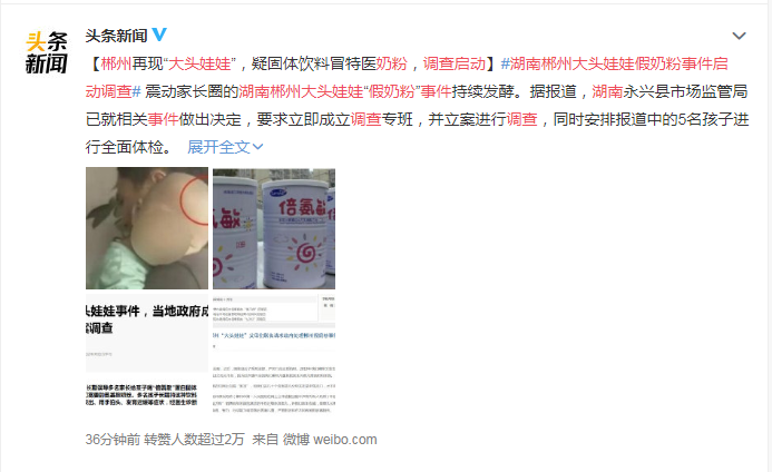 5月11日,湖南电视台《经视焦点》栏目报道永兴县“爱婴坊母婴店以蛋白固体饮料冒充婴幼儿奶粉进行销售欺骗消费者”。永兴县委宣传部通报称,永兴县当晚已召开专题会议研究,组织专班开展调查。