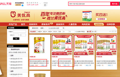 在其天猫旗舰店和京东旗舰店的商品标题上也标有澳优奶粉、澳优美优高字样。