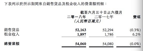 有两个关键数据出现了负增长。其一,是同店销售增长为-1.56%,超过去年同期-0.90%的数字,意味着同店销售负增长在加剧。此外,销售货品所得营业额较去年同期的522.94亿元减少1.31亿元至521.63亿元,下滑了0.3%。与之对应的,是运营成本提升了5%,由去年同期的92.6亿元增加到了97.2亿元。
