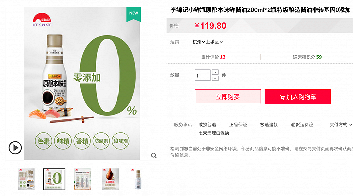 同时,它主打即简配方,强调配料中仅有水、非转基因黄豆、小麦、食用盐、白砂糖5种原料,“其他(配方)没了”。此外,包装采用了双层技术的“留鲜瓶”,据称能够防止酱油氧化、保持口感。