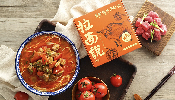 作为近几年在电商渠道销量相当亮眼的新兴速食面品牌,拉面说的面体为半干生鲜面,内部食材包均采取分装模式,平均保质期在60天左右。其产品在盒马、全家等线下渠道也有售卖,定价在12元至20元之间不等;常规口味约有20种,“梅鹿与花”购买的,是其中的“小龙虾风味乌冬面”。