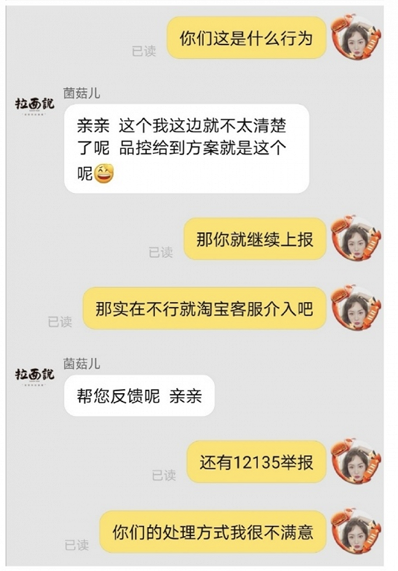 快消品网了解到在发现面体发霉后,该消费者联系品牌方要求赔偿。在其发布的与拉面说天猫旗舰店客服的聊天记录中,最早客服提出的解决方案是“退一盒的款或者补发一盒”;此后又提出可以退订单全款。对此,该消费者则回复表示,依据食品安全法148条,商品金额不满1000元的要按照1000元赔偿。此后客服电话消费者,表示愿意依据规定赔付1000元。但据消费者反馈,品牌方最终并未按照承诺赔付1000元,而是向其转账150元。